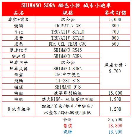玩美城市小徑跑車,搭配 SHIMANO SORA ,車重8.9 KG