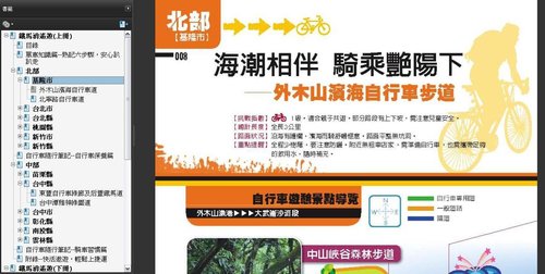 體委會編印發行《鐵馬逍遙遊:全台50條自行車道大蒐集》 目前全台各地已有許多風景秀麗的自行車道,為了提供更完整自行車道訊息,體委會特別完整收錄台灣各地值得一遊的自行車道,企劃編印《鐵馬逍遙遊:全台50條自行車道大蒐集》。