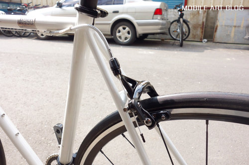 後叉正面照,鋼管的纖細一覽無疑,白淨主體車身更托氣質