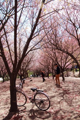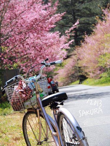 漫山遍野的山櫻花,點綴其間,看著照片也彷若獨自漫騎於山野間,賞析這些落英的斑瓓與絢麗