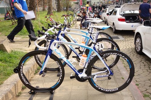 關於我們的車架幾何… 嗯? 為什麼要放張照片?? 問得好,因為跟小編下一次要寫的主題有關,所以先擺上來 (這是在2013環台賽桃園場的現場拍的…you know,小編寫這個真的欠很大厚!!) |