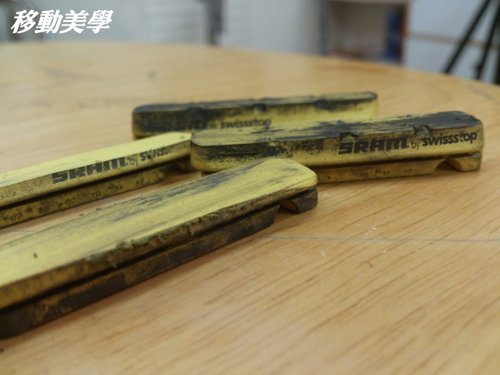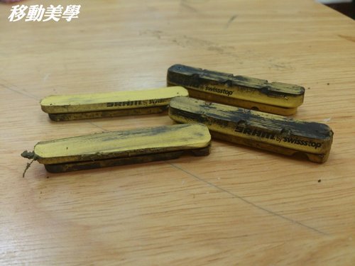(磨得比較利害的後輪的煞車片…整片都黑黑的…)
